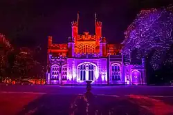 Much of the 19th-century character of the grounds remains. The grounds include private gardens as well as formal open areas. Near the house (on its south-east side) is a giant Moreton Bay fig (Ficus macrophylla), planted soon after the house's construction was completed. This tree is the surviving one of a former pair which stood either side of the terrace.[1][18] The formal grounds of sweeping annual displays, manicured lawns, exotic trees and shrubs as well as the carriageways, paths and terraces provide a strong link with Sydney's colonial and Victorian heritage.[1][19]