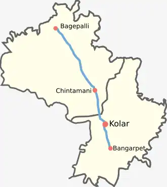 The route followed by this highway is Bagepalli - Chintamani - Kolar - Bangarpet.
