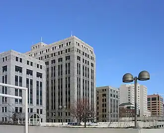 The State Office Building is an 11-story, 177-foot-tall (54 m) high-rise located in downtown Madison, Wisconsin, United States. The complex was built in three separate stages between 1931 and 1959, with the main section being completed in 1939. It is built in an art deco style, and it is the tallest office building in downtown Madison.[2]