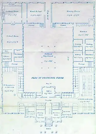 The school was initially designed to accommodate 150 boys, with a long-term plan for up to 300. The commissioners emphasized that this was to be a reform school, not a prison, and aimed to create a facility that would promote rehabilitation. The State Reform School for Boys operated from 1848 to 1884.