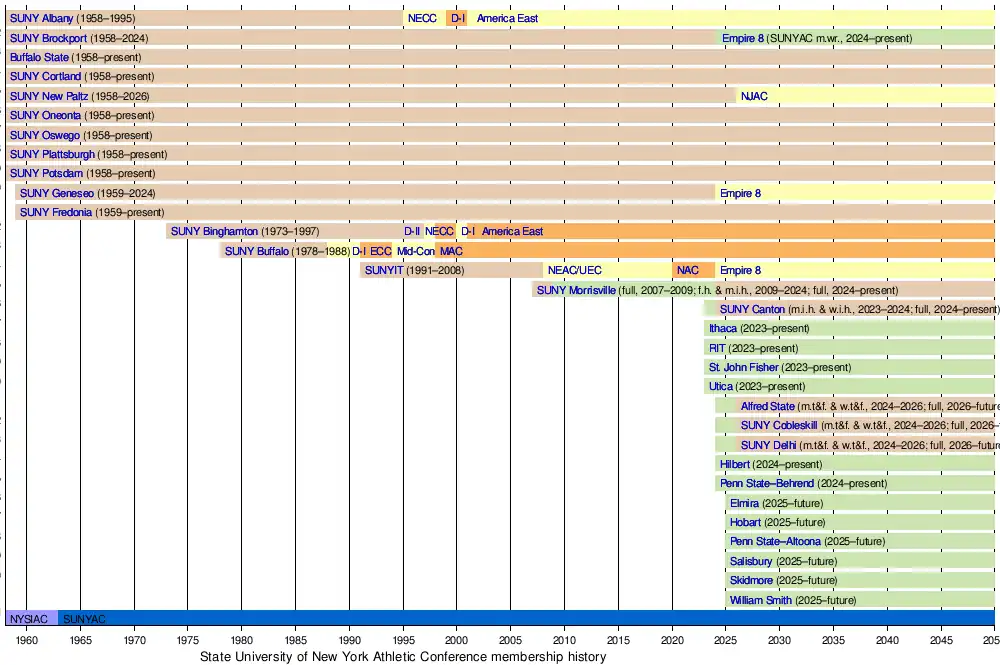- ^ "SUNYAC adds full members Alfred State, SUNY Cobleskill & SUNY Delhi; 4 associates". sunyacsports.com. 2025-06-05. Retrieved 2025-06-05.
