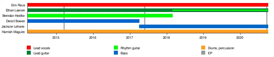 Front woman Erin Reus cited Bring Me the Horizon and PVRIS as major influences to the band's sound, especially on their 2017 EP Naïve. "As a young person learning about love, I didn’t know how else to express my feelings other than to write about them. I spent a lot of time hovering over all of the problems, and writing/recording/releasing the EP was basically closure for me......." said Reus when interviewed about her lyric writing on the Naïve EP.[17] Reus' vocal talent has been described as a mix of Jenna McDougall, from Tonight Alive, and Halsey.[12]