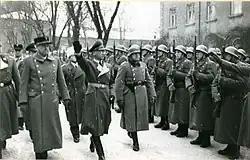 Its purpose was primarily to combat so-called political crimes, refugees, espionage, sabotage, armed resistance and other kinds of resistance against the German occupation forces or the Norwegian collaborationist Quisling regime. Statspolitiet played an important role during the Holocaust in Norway, aiding in the deportation of the Jews in Norway.[2] Norwegians were arrested by contemporary laws, and many were later sent to prison camps in Norway and concentration camps in what was then Germany. Statspolitiet was organized with a headquarters in Oslo and six subsidiaries in Oslo and Aker, Stavanger, Bergen, Trondheim, Tromsø and Kirkenes.[3][4] Statspolitiet was subordinate to the chief of the security police and the Norwegian Minister of Police, Jonas Lie. Statspolitiet also received orders directly from the Reich Security Main Office.[5][6] The general of Statspolitiet, Karl A Marthinsen was assassinated by the Norwegian resistance movement on 8 February 1945. This caused massive reprisals, in which 34 imprisoned resistance fighters were executed at Akershus Fortress.[7]