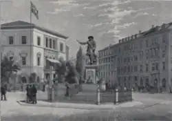 ![]() The Niels Juel statue viewed with the old Hafnia headquarters as a backdrop | |