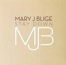 "Stay Down" is a song by American singer Mary J. Blige, taken from her eighth studio album, Growing Pains (2007). It was written by Blige along with Johnta Austin and Bryan-Michael Cox, while production was helmed by Box. Released as the album's third and final single, it replaced "Hurt Again", that was released for a short time for airplay, but at the last minute was canceled in the favor of "Stay Down".