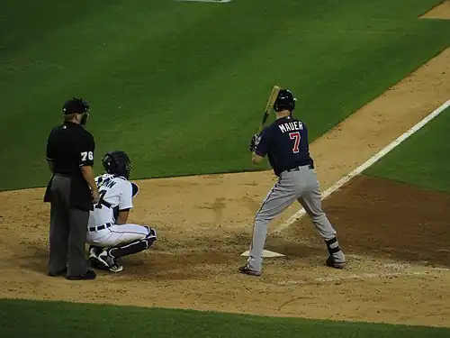 In baseball, sign stealing is the act of observing the signs being signaled by the opposing catcher to the pitcher or a coach, and the subsequent relaying of those signals to members of one's own team. Signs are stolen with the intent of gaining advance knowledge of the upcoming pitch and communicating it to the batter, thereby giving them an advantage.[1] Legal sign stealing typically involves the signs being observed by a runner on second base and then relayed to the batter through some sort of gesture. Illegal sign stealing involves mechanical or electronic technology; the rules regarding this have become more stringent over time and continue to evolve.[2]