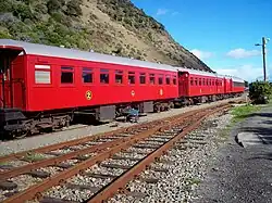 | A 1989 | A 56769 | NZR Otahuhu Workshops | 56' steel-panelled mainline carriage | 1943 | 1996 | Surplus ex-Auckland suburban service 1996.[19] Restoration completed in 2003.[14] Mainline certified.[20][8] |
