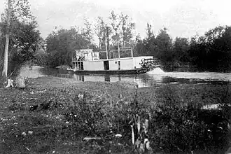In 1886, Frank P. Armstrong assembled a steamboat from miscellaneous planks and timbers that were lying around at an old sawmill. The result was the Duchess, launched in 1886 at Golden. Two early passengers wrote that her appearance was "somewhat decrepit" and Armstrong himself later agreed that she was "a pretty crude steamboat."[1][6]