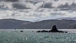 Steeple Rock/Te Aroaro-o-Kupe is a large rock off Seatoun at the west of the entrance to Wellington Harbour, rising 7 metres (23 ft) above sea level. The rock plays a role in warning ships off the coast. It is the location of a marine light and an unbeaconed trig station (‘Steeple Rock Light’, geodetic code B0XX).