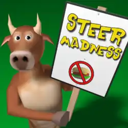 Steer Madness is an animal rights inspired adventure game developed and published by Johnathan Skinner, with the latest version released on April 24, 2023 for mobile and desktop.[1] The original version of the game was developed under the name Veggie Games Inc. and was released in December 2004.[2][3][4] It joined the ranks of games made by PETA, Greenpeace, and others.[4]