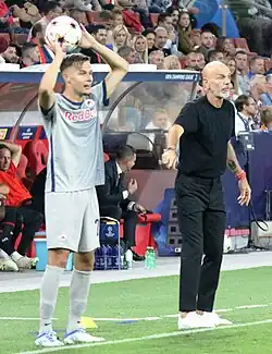 Pioli usually uses a 4–2–3–1 formation, or a 3–5–2 formation, with full-backs or wing-backs who actively take part in the team's attacking plays. During his time at Lazio, he often used a 4–3–3 formation. Due to his passion for basketball, he attempted to bring strategic elements of the sport into his own tactical approach as a football manager.[69][70][71][72]
