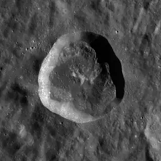 This crater lies to the northwest of the Mendel-Rydberg Basin, a 630 km-wide impact basin of Nectarian age.