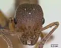 The body is covered in scattered pale hairs, laying flat on appendages. Workers are measured at 3.5 - 4.0mm,[1] queens measured at 4.2 - 4.8mm with their wings having a yellowish tint and males measured at 3.8 - 4.5mm.[3]