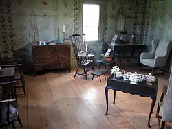 Stencil House, built in 1804 on one hundred-acre farm in Columbus, New York, was modeled after a Capen house, a small, side-gabled structure prevalent throughout the colonies in the 17th and 18th centuries.[1] Named after Parson Joseph Capen of Topsfield, Massachusetts, who built one of the earliest such structures in 1692, Capen houses reflect the British influence on early Puritan architecture. The house is now an 18th-century period historic house museum located at the Shelburne Museum in Shelburne, Vermont.