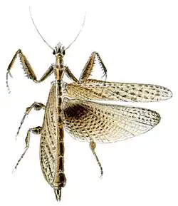 - ^ Otte, Daniel; Spearman, Lauren; Stiewe, Martin B. D. (2019). "genus Stenophylla Westwood, 1845". Mantodea species file online, Version 5.0. Retrieved 2020-07-16.