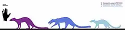S. minor, the smallest species, is thought to have been about half as large as Alagtsavbaatar indigenus, which is slightly larger than S. cayluxi and S. crocheti. S. crocheti is also larger than S. cayluxi.[8][2] The skull length of S. cayluxi, based on cranial material from Germany and France, is estimated to be from 87 mm (3.4 in) to 90 mm (3.5 in); one skull of S. cayluxi from the lignite mines of the German town of Espenhain is estimated to measure 87 mm (3.4 in) at most. Its skull is somewhat larger than that of Palaeoprionodon at 77 mm (3.0 in).[14] According to Robert M. Hunt, Jr., S. minor would have been comparable in size to the dwarf mongooses of the genus Helogale.[19]