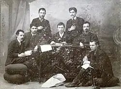 Stepan Gevorgi Shaumian was born to a family of Armenian cloth merchants in Tiflis (Tbilisi), then part of the Russian Empire.[5] His family was descended from the Shaumian line of meliks (Armenian nobility) of Meghri; one of his ancestors, also named Stepan Shahumian, took part in Davit Bek's rebellion in the 1720s.[6] He became involved in revolutionary politics as a student in Tiflis. He graduated in 1898 and entered the Riga Polytechnic Institute, but left when his family ran into financial difficulties, and found work as a proofreader. In 1899, he formed Armenia's first Marxist group in the village of Jalaloghli (today the town of Stepanavan).[7] In 1900, he returned to Riga to resume his education at the Polytechnic Institute and joined the Russian Social Democratic Party (RSDLP).[1] In 1902, he was expelled from the institute, arrested, and exiled back to Transcaucasia.[1]