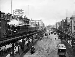 Stephen moved into his brother Edmund's house in Lakeview, a suburb of Paterson, New Jersey, in the fall of 1891. From there he made frequent trips into New York City, writing and reporting, particularly on its impoverished tenement districts.[46] Crane focused particularly on The Bowery, a small and once prosperous neighborhood in southern Manhattan. After the Civil War, Bowery shops and mansions had given way to saloons, dance halls, brothels and flophouses, all of which Crane frequented. He later said he did so for research. He was attracted to the human nature found in the slums, considering it "open and plain, with nothing hidden."[46] Believing nothing honest and unsentimental had been written about the Bowery, Crane became determined to do so himself; this was the setting of his first novel.[47] On December 7, 1891, Crane's mother died at the age of 64, and the 20-year-old appointed Edmund as his guardian.