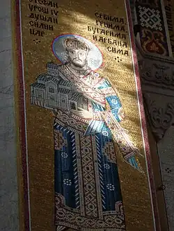 Today Dušan's remains are located in the Church of Saint Mark in Belgrade.[45] Dušan is the only monarch of the Nemanjić dynasty who has not been canonised as a saint.