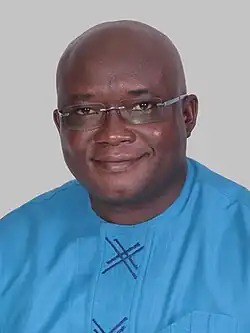 Stephen is a member of NPP and currently the MP for Pru West Constituency.[4] He won the parliamentary seat with 16,606 votes making 56.7% of the total votes whilst the incumbent Masawud Mohammed had 12,671 votes making 43.3% of the total votes.[5] Currently, he is the Deputy Minister for Roads and Highways.[6][7][8][9]