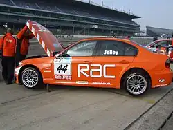 Jelley switched to touring cars after his GP2 Asia campaign contesting the 2008 British Touring Car Championship with Team RAC as Colin Turkington's team-mate.[6] His last GP2 Asia weekend clashed with the second BTCC meeting of the year at Rockingham meaning a GP2 race in Dubai on the Friday and BTCC qualifying at Rockingham on the Saturday. Early results were not impressive, with only one point in the first 4 meetings, results gradually improved with points finishes in each of the next 3 meetings, At Silverstone he qualified seventh, but after finishing there in round 25, he crashed in round 26, dislocating his shoulder. Despite this injury he did contest round 27, finishing in the points. At the Brands Hatch season finale, he took pole position, although as he explained to ITV4, the team did not initially believe he had set the fastest time, and attributed seeing P1 on the screen to a timing error. In the race his gearbox failed, but he fought back to score minor points in the final round. For 2009 he continued with Team RAC and showed he had benefited from a years knowledge by finishing fourth (a then personal best) at the first round at Brands Hatch. Results continued to improve and at the halfway point of the 2009 season, Jelley took two-second-place finishes and a third position in the third race at Croft to clinch his first podium finishes in the sport. This was followed up at Rockingham with two wins one in race 1 from a starting position of fourth and one in race three again from fourth.