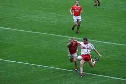 O'Neill burst on to the senior county scene and by 2001 had won an Ulster title and the first of his three All Star Awards. During his time with Tyrone he was first choice penalty taker – scoring three in the run up to Tyrone's 2005 All-Ireland victory,[4][5] and also shared free-taking duty with Owen Mulligan—usually dictated by who is kicking on their stronger side.