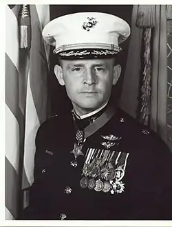 A complete list of his medals and decorations include the Medal of Honor, the Silver Star, the Distinguished Flying Cross, the Bronze Star, the Purple Heart, 38 Air Medals, the Navy Commendation Medal with valor device, the National Defense Service Medal, the Marine Corps Expeditionary Medal, the Armed Forces Expeditionary Medal, the Korean Order of Military Merit, the Vietnam Service Medal, and the Vietnam Campaign Medal.[2]