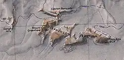 Features of the massif that are named on the 1983 United States Geological Survey map are (west to east):[2]