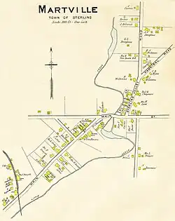 - Martville – A location near the eastern town line on NY State Route 104.