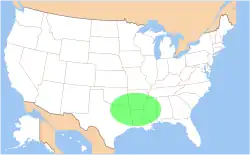 However, it is only found in certain parts of those states except Louisiana. It is found in southeastern Oklahoma, southern and eastern Texas, southern Arkansas, south-central Mississippi, and extreme southwestern Alabama.[4]