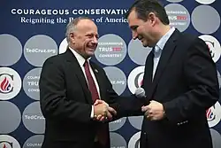 King endorsed Ted Cruz in the 2016 Republican presidential primaries, saying Cruz was the "answer to my prayers".[87] He endorsed and strongly supported Donald Trump after Trump won the nomination.[88][89]
