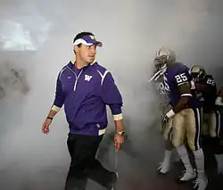 Stephen Sarkisian (/sɑːrˈkiːʒən/; born March 8, 1974)[2] is an American football coach and former player who is the head football coach at the University of Texas at Austin. He previously was the head football coach at the University of Washington from 2009 to 2013 and the University of Southern California (USC) from 2014 to 2015.