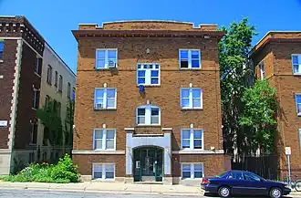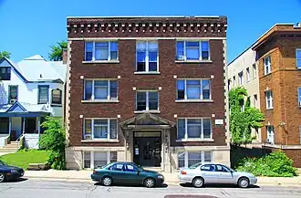 ![]() Stevens Court, the oldest contributing building in the Stevens Square Historic District, built in 1913. | |