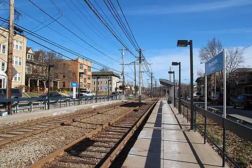 Stevenson is a station on the Port Authority of Allegheny County's light rail network, located in Dormont, Pennsylvania. The street level stop is located in a highly populated residential area that features many medium density multi-unit facilities. It serves commuters within walking distance, providing access toward Downtown Pittsburgh or South Hills Village.