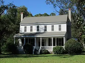 Stewart-Hawley-Malloy House is a historic home located near Laurinburg, Scotland County, North Carolina. It was built about 1800, and is a transitional Georgian / Federal style frame dwelling. It consists of a two-story, five bay by two bay, main block with a one-story, two bay by four bay, wing. The main block has a full-width, one-story front porch and rear shed additions. It was built by North Carolina politician James Stewart (1775-1821) and the birthplace of Connecticut politician Joseph Roswell Hawley (1826-1905).[2]