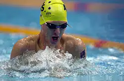 ![]() Action shot of Pike in the pool during competition at the 2000 Summer Paralympics | |||||||||||||||