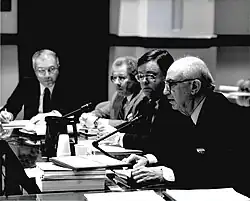 - Alan Dunn – Former U.S. Assistant Secretary of Commerce appointed by President George H. W. Bush and served as one of the lead U.S. negotiators in the multilateral GATT Uruguay Round negotiations, which established the World Trade Organization (WTO) and in the North American Free Trade Agreement (NAFTA) negotiations with Mexico and Canada.[23] He also participated in negotiations to resolve a number of sectoral trade disputes, such as the 1991 U.S.-Japan Semiconductor Arrangement.[24]