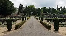 The monasteries in Steyl are surrounded by large gardens which are partly used as vegetable gardens and fruit orchards, including several greenhouses. Other parts of the gardens function as recreational parks with flower beds, lawns, woodlands, ponds, gazebos and park benches. In addition, all monastery gardens feature a wide range of Roman Catholic devotional elements such as Lourdes grottoes, Biblical-themed grottoes, Stations of the Cross, Calvary groups, Sacred Heart statues (5!), and various Marian shrines and statues of saints, including several portrait busts of Arnold Janssen. Each garden has its own cemetery. A large section of the gardens of St. Michael's Monastery (the section across the road from the main monastery building, south of Parkstraat) is open to the public. The gardens and cemetery of the Sacred Heart Monastery can be visited only after obtaining permission. The Holy Ghost Monastery gardens are closed to the public.[1]