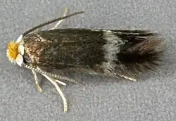 The wingspan is 4-4.6 mm. Adults are on wing in May and again from July to August.