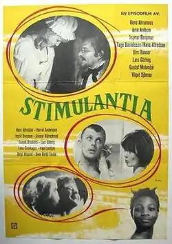 Stimulantia is a 1967 Swedish anthology film directed by Hans Abramson, Hans Alfredson, Arne Arnbom, Tage Danielsson, Lars Görling, Ingmar Bergman, Jörn Donner, Gustaf Molander, and Vilgot Sjöman.[1]