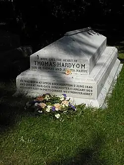 The churchyard also contains the grave of Poet Laureate Cecil Day-Lewis, who died in 1972 and had arranged for his burial to be close to Hardy whom he admired.[5][6] Also here are the remains of the actor and dramatist William O'Brien (died 1815) and his wife Lady Susan Fox-Strangways.[7]