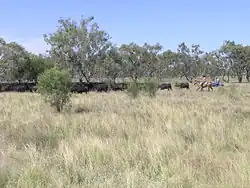 Travelling stock routes also provide crucial habitat and connectivity for many endangered species and ecosystems. Their length and density mean that they provide a comprehensive sample of the landscape and biodiversity of eastern Australia.[15] Most predate the late Victorian gazetting of conservation reserves, and thus provide substantial protection to highly cleared ecosystems that were targeted for agricultural clearing in the preceding colonial period,[16] and are therefore under-represented in the national park system (e.g., the flat land west of the Great Dividing Range). The entire network is publicly owned, and therefore represents the best remaining opportunity for conservationists to protect large amounts of threatened biodiversity. Further, the Travelling Stock Routes provide a serendipitous solution to the problem of biodiversity connectivity in the face of climate change.[17] As temperature and rainfall patterns begin to change, the stock routes represent a set of corridors that organisms can safely transverse to reach appropriate climatic conditions.
