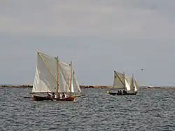 Nowadays, the postal road gets increasing attention thanks to tourism. Additionally, it's been steadily gaining historical sense. There is a signposted bike path along the original route on Åland's mainland. Since 1974 there has been a yearly post rowing regatta in June that is organized in replica postal boats between Eckerö and Grisslehamn: one year heading eastwards and the subsequent year in the western direction.[4] In the event, all teams have to deliver a bag with real mail. As many as forty teams of four members take part in the regatta. The record time stands at 3 hours and 18 minutes (2005). However, it really isn't about the competitive aspect as much as the social festivities, commemorating the history, the touristic element, and of course, the safe delivery of the postal bags.