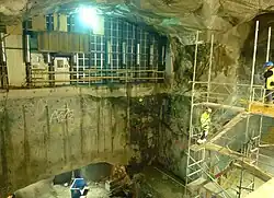 Construction started in 2009 and was done by building access tunnels from the depot at the central station, Vattugaraget and Torsgatan. The tunneling and bedrock work was completed in 2013, after which the station itself with facilities was built.[3]