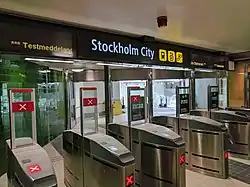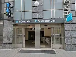 Stockholm City is a railway station in central Stockholm, Sweden. Opened on 10 July 2017, the station is located on the Stockholm City Line. It is located directly below T-Centralen (the hub of the Stockholm Metro) and is connected to Stockholm Central Station. The station serves all Stockholm Commuter Rail routes except for line 48.[2] It is the busiest mainline railway station in Sweden.