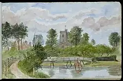 It was here in 1666, at this 14th-century church, that George Boone III, grandfather of Daniel Boone, the American pioneer and frontiersman, was baptised.[3]