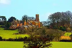 The village's name means 'outlying farm/settlement'. The village is positioned on a hill above a valley that may have been marshy in previous times and may have been drained.[3]