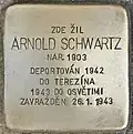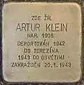 ARTUR KLEIN BORN 1906 DEPORTED 1942 TO THERESIENSTADT 1943 TO AUSCHWITZ MURDERED 20 January 1943 |