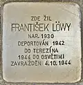 FRANTIŠEK LÖWY GEB. 1930 DEPORTIERT 1942 NACH THERESIENSTADT 1944 NACH AUSCHWITZ ERMORDET 4 October 1944 |