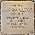 JINDŘIŠKA ADLEROVÁ BORN 1910 DEPORTED 1942 TO THERESIENSTADT TO AUSCHWITZ 1943 MURDERED |